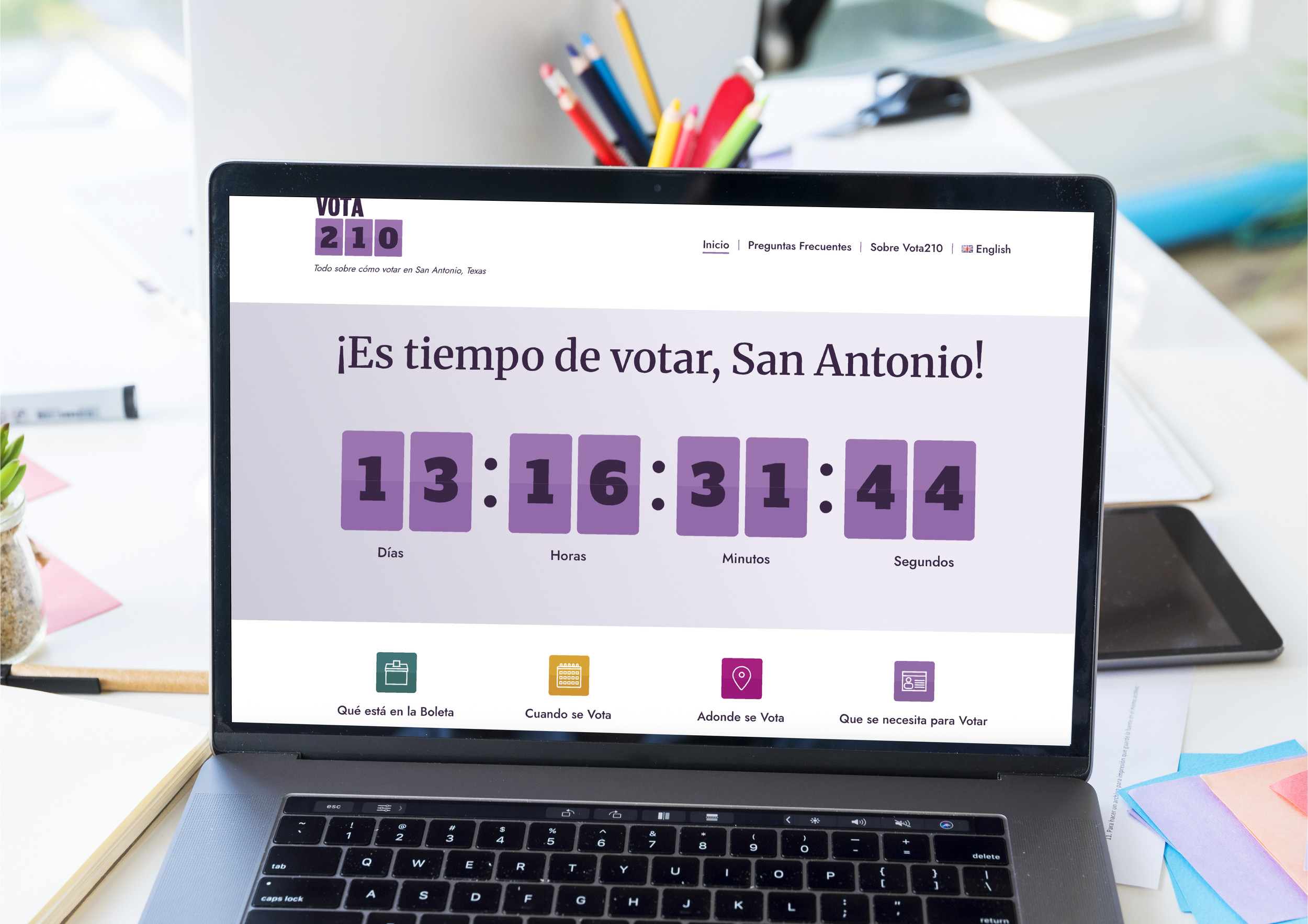 Vota210: En 2024, lanzamos el sitio de red, Vote210, en ingles y español (¡Las páginas fueron traducidas por una persona y no por la inteligencia artificial!) Vota210 es un recurso que sintetiza información de votación que existen a través de varios medios que son no tan fácil de usar y hace más fácil el acceso a información crítica sobre como votar en elecciones en San Antonio. Se publicaron dos historias en los medios locales en conjunto de nuestro lanzamiento y en los medios digitales logramos alcanzar a 10,000 perfiles de redes sociales en 30 días.